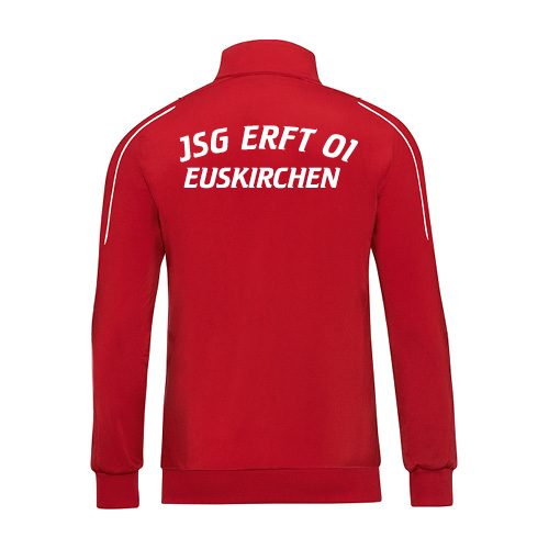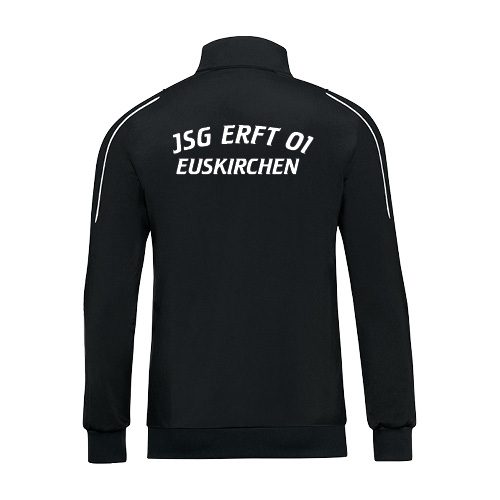 Die Budget Ausführung beinhaltet eine Budget Flex-Folie, das JSG Wappen auf der Brust in bunt und die Rückennummern ohne JSG-Wappen.
